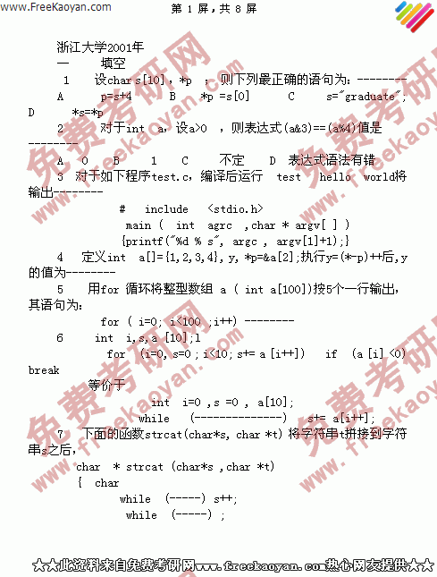浙江大学2001年考研真题-数据结构