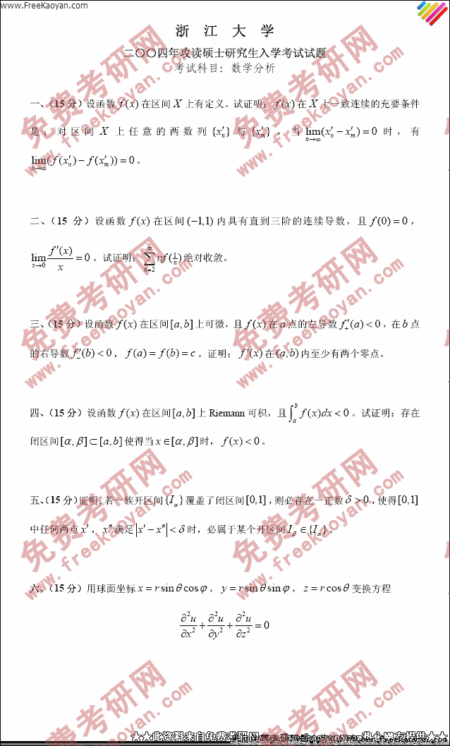 浙江大学2004年考研真题-数学分析