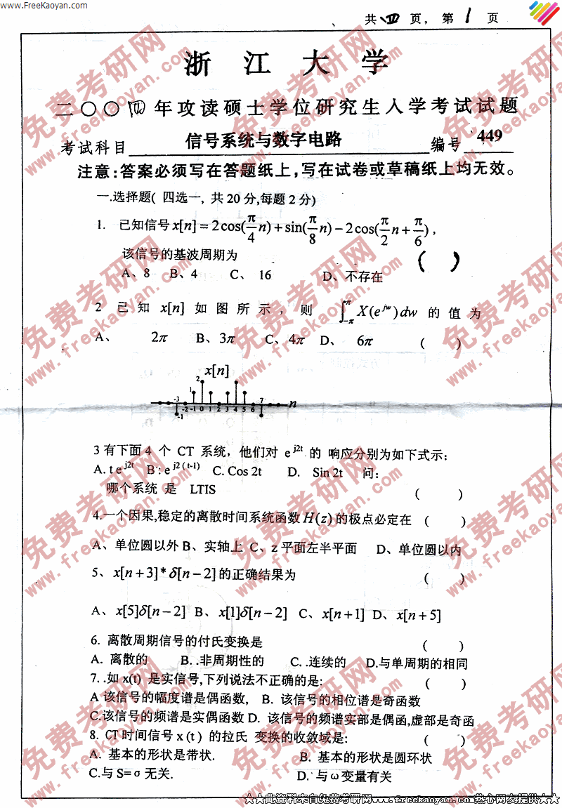 专业课考研经验 本站小编 FreeKaoyan 2018-01-22浙江大学2003年考研真题-信号与系统