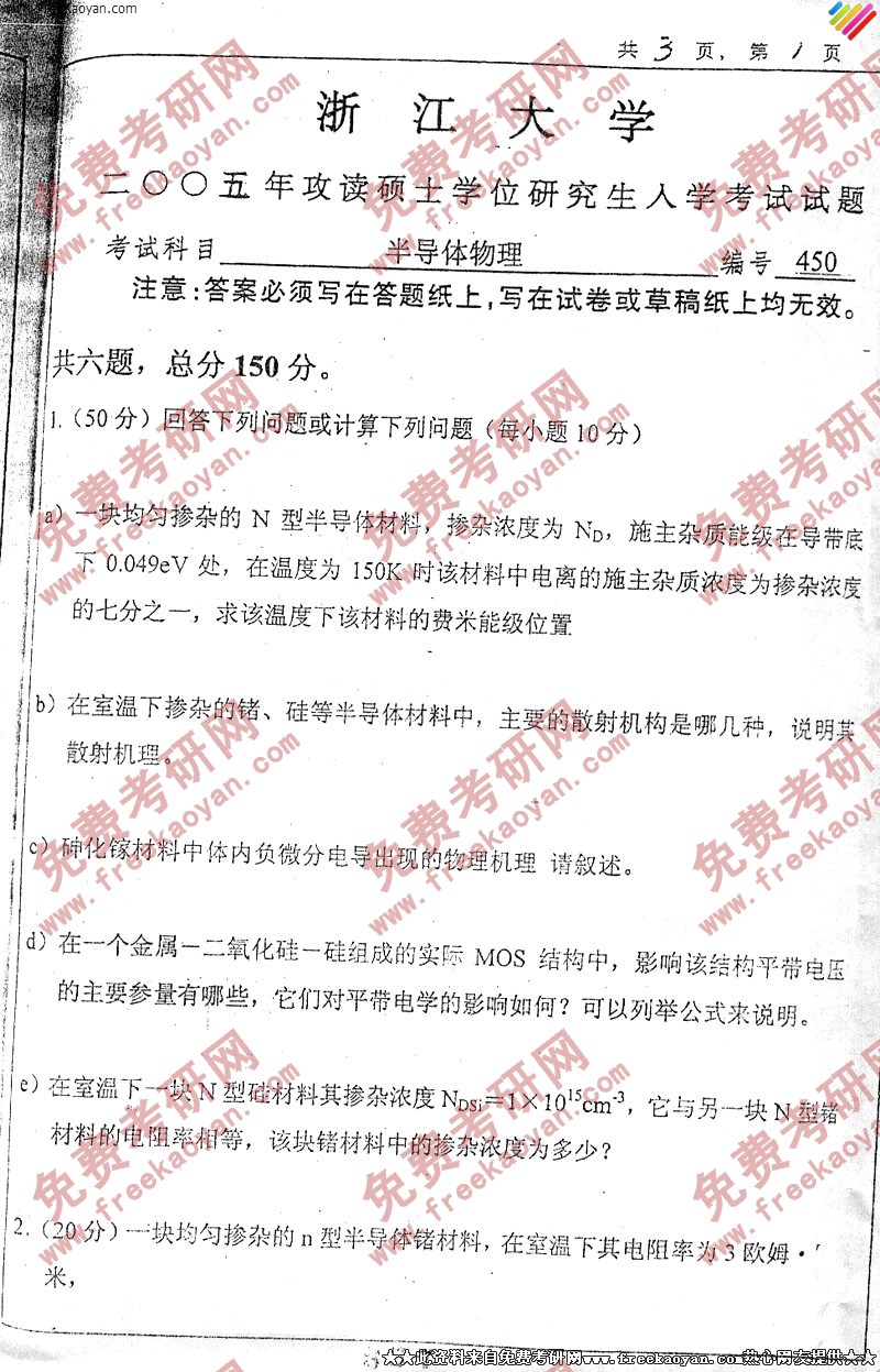 专业课考研经验 本站小编 FreeKaoyan 2018-01-22浙江大学2005年考研真题-计算机复试上机题
