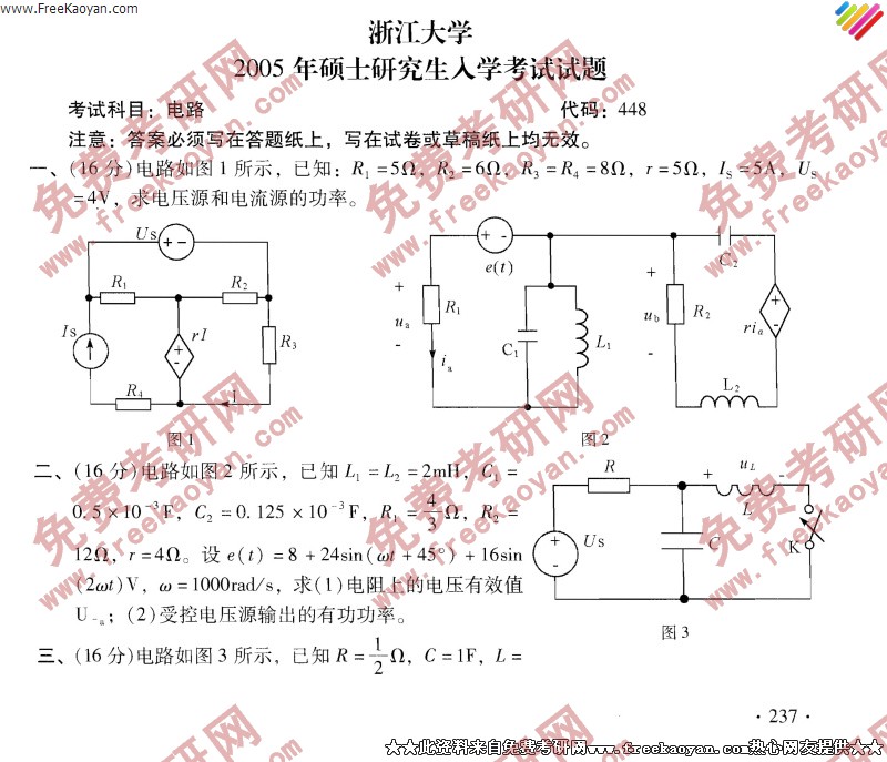 浙江大学2005年考研真题-电路