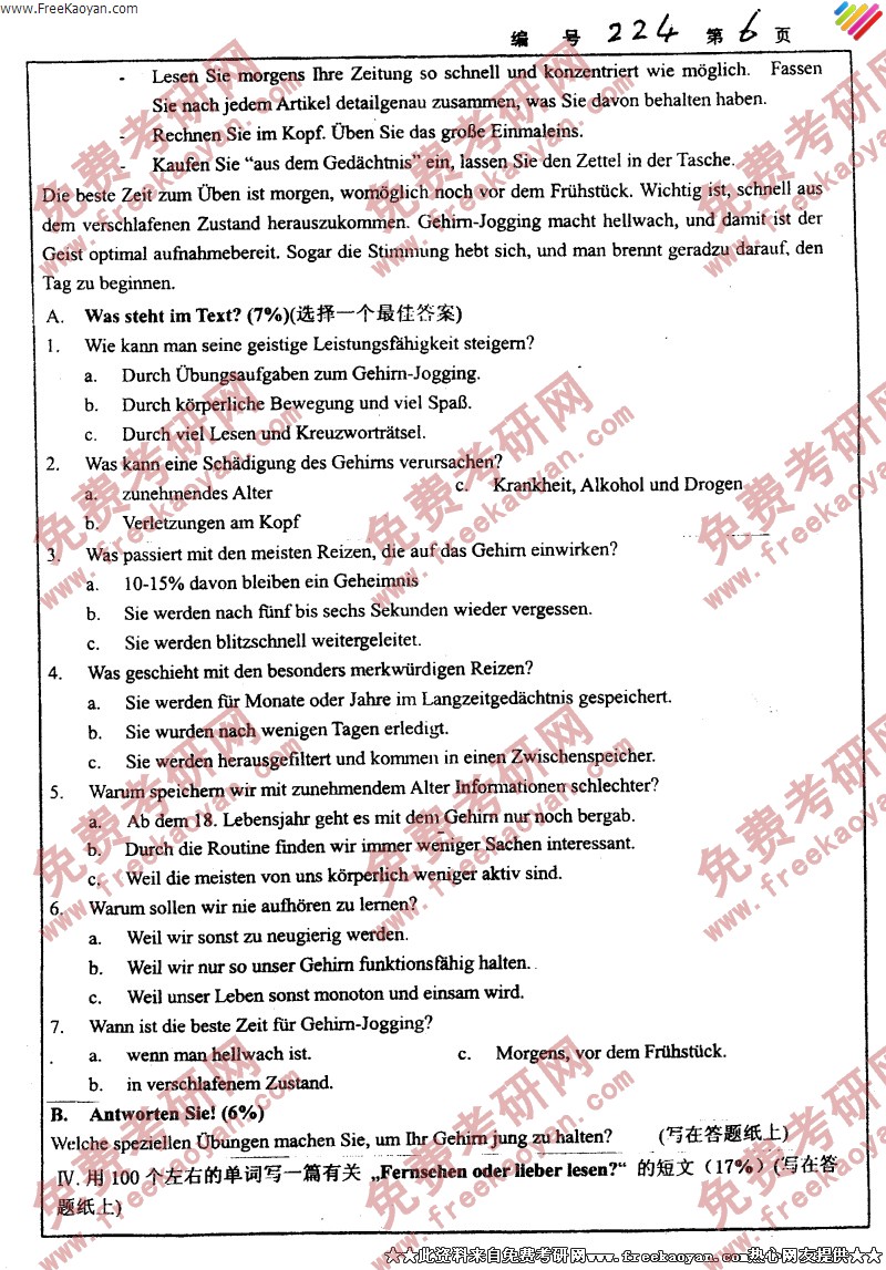 浙江大学2005年考研真题-二外德语(6)