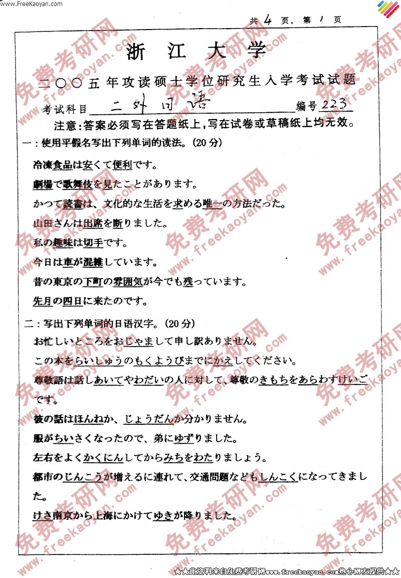 专业课考研经验 本站小编 FreeKaoyan 2018-01-22浙江大学2005年考研真题-二外法语