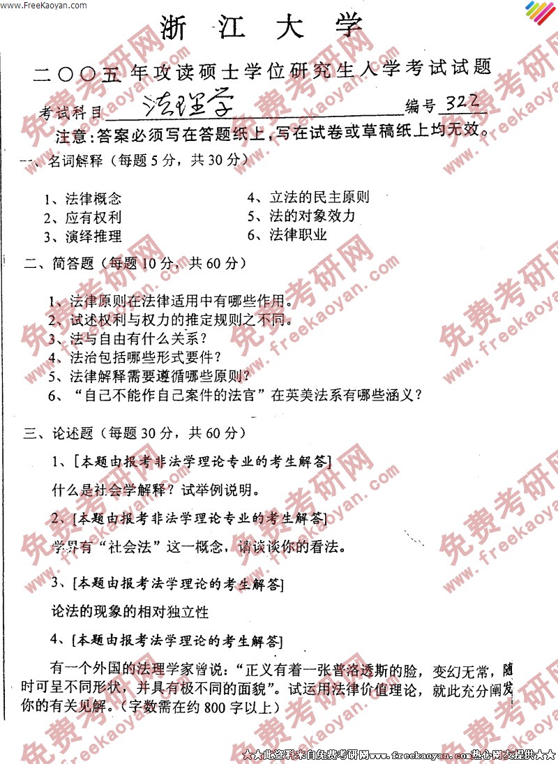 专业课考研经验 本站小编 FreeKaoyan 2018-01-22浙江大学2005年考研真题-二外法语