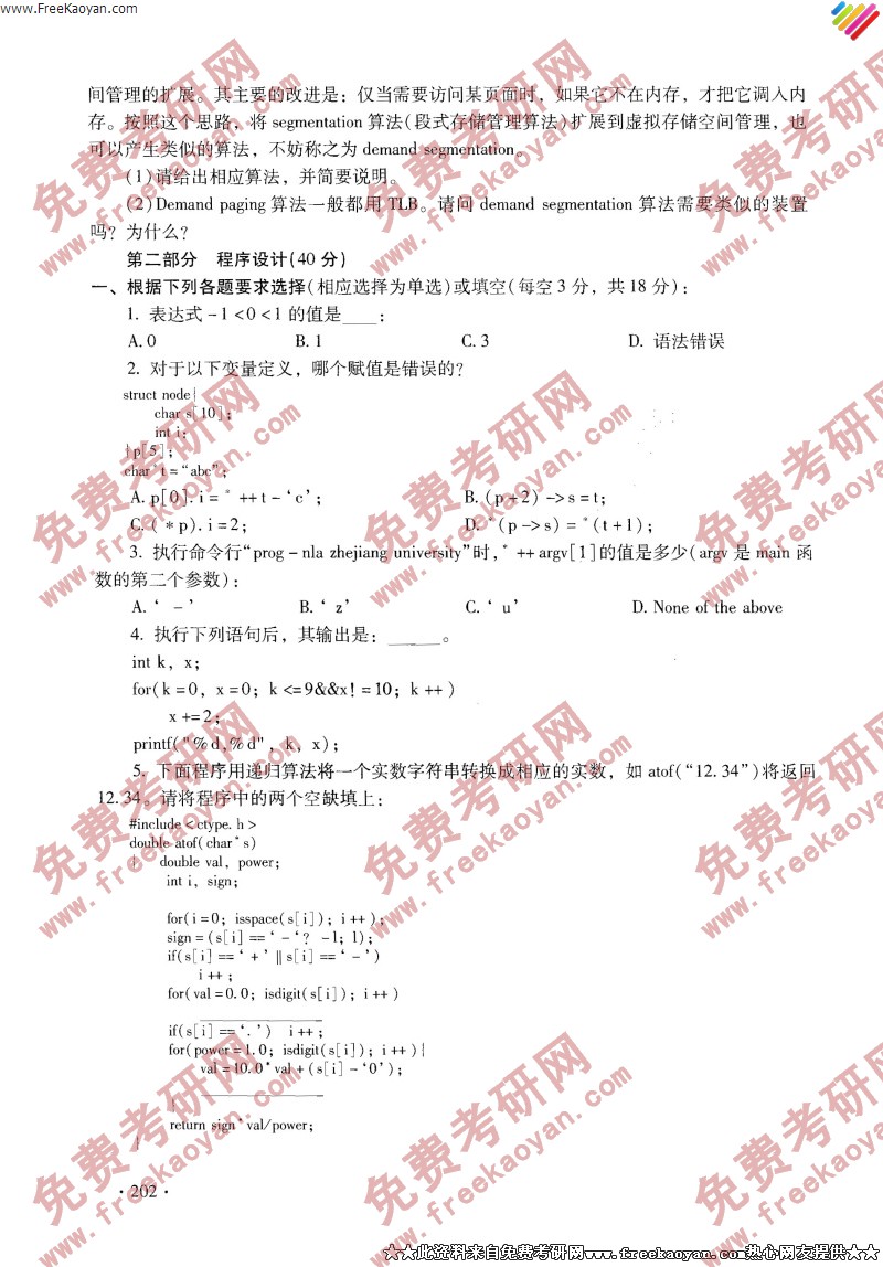 相关话题/考研真题 浙江大学 专业基础 计算机