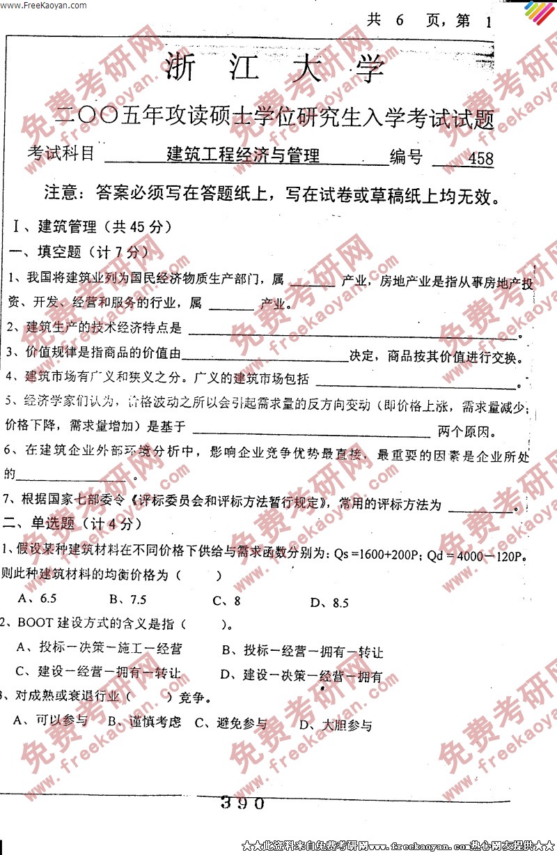 相关话题/考研真题 浙江大学 经济与管理 建筑工程