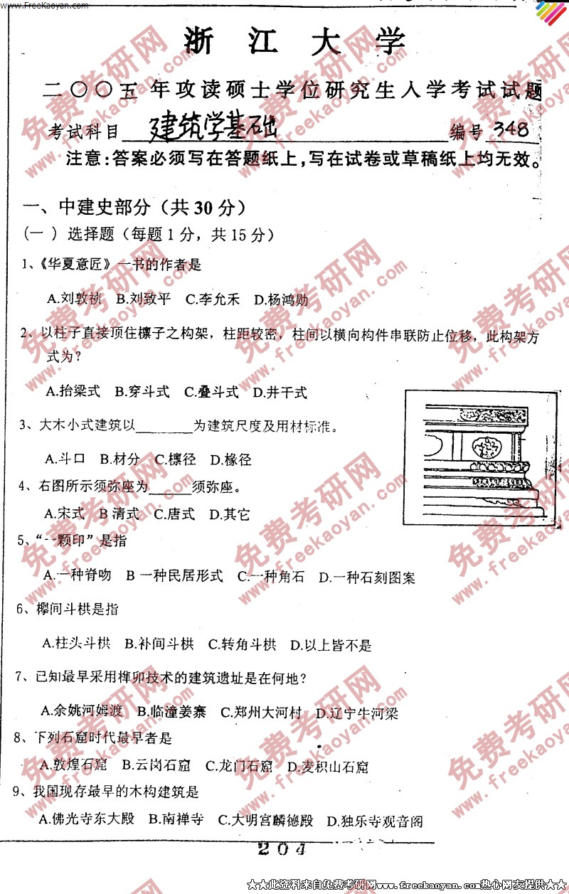 专业课考研经验 本站小编 FreeKaoyan 2018-01-22浙江大学2005年考研真题-建筑技术
