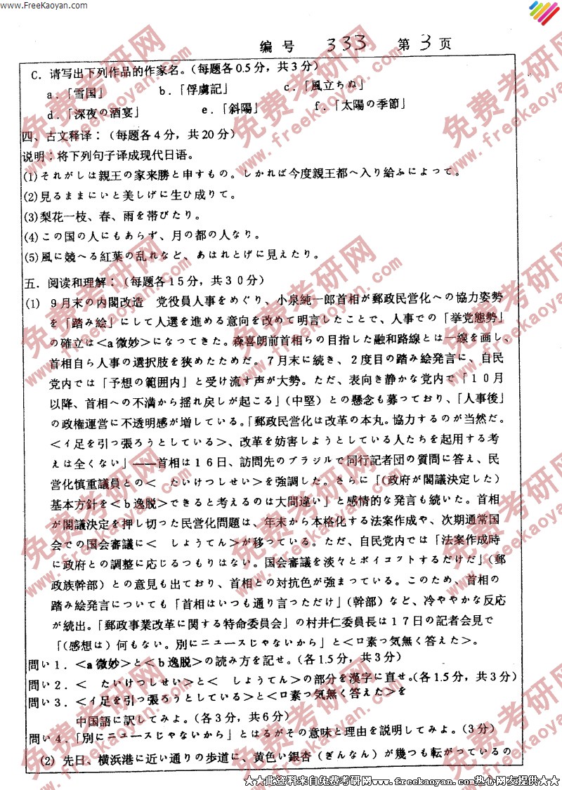 专业课考研经验 本站小编 FreeKaoyan 2018-01-22浙江大学2005年考研真题-二外日语