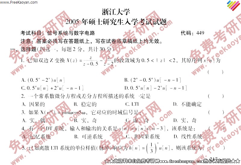 浙江大学2005年考研真题-信号系统与数字电路