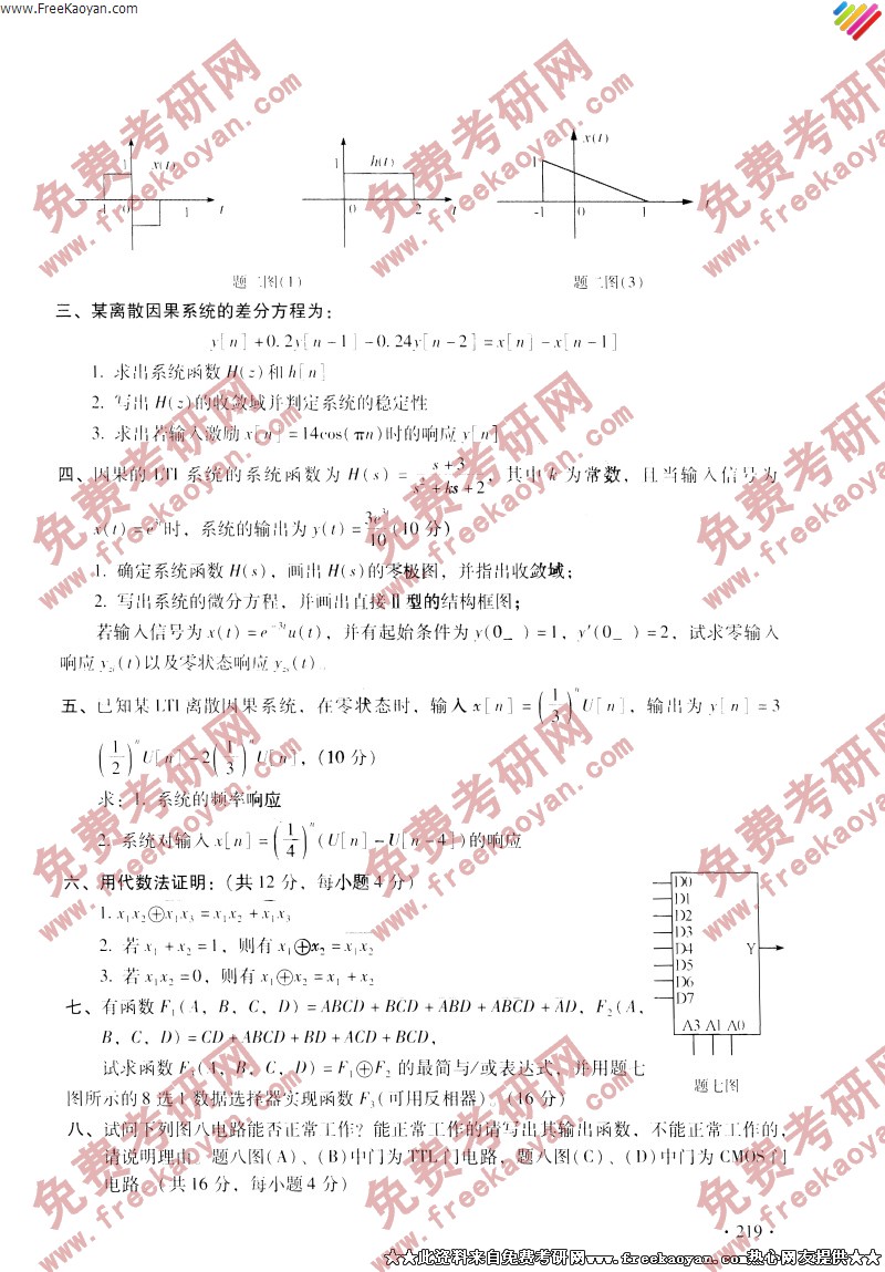 相关话题/考研真题 浙江大学 信号 数字电路 系统