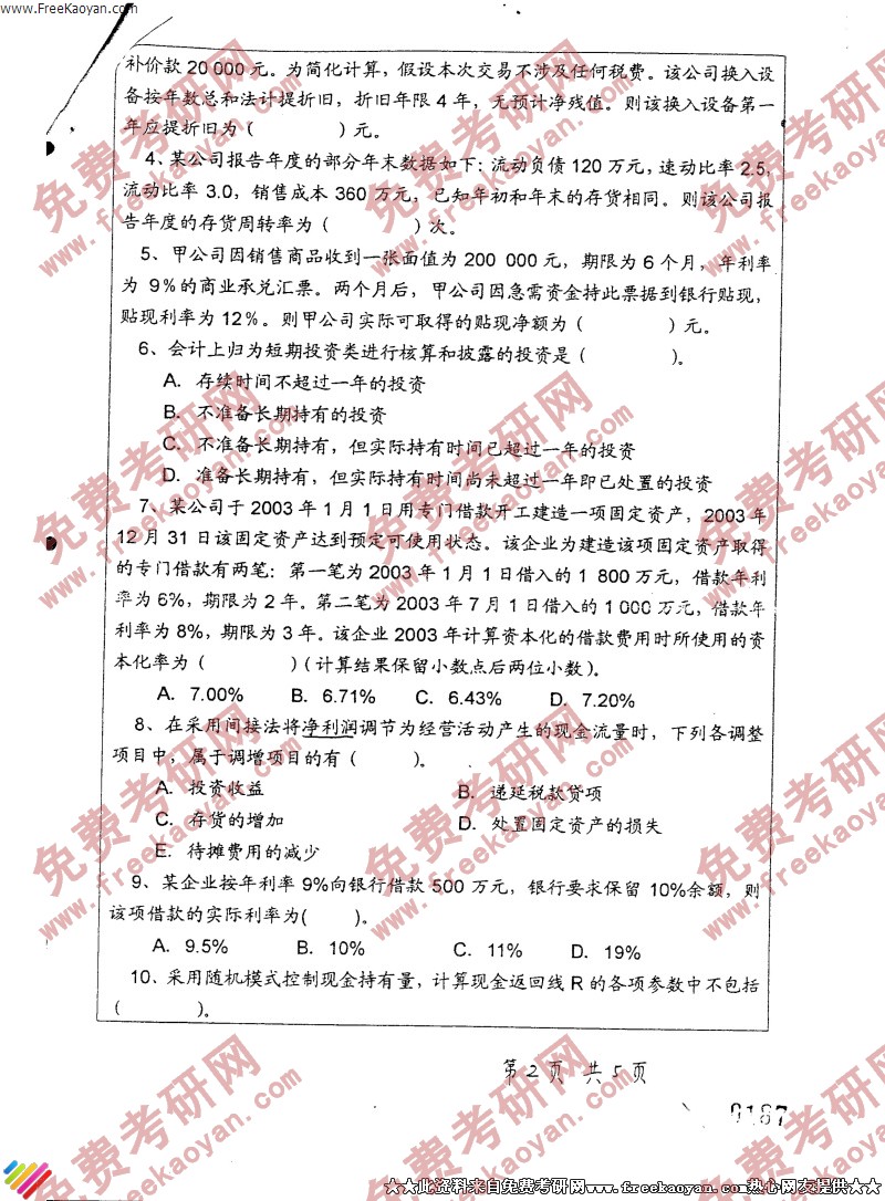 浙江师范大学2004年考研真题-财务会计教学综合基础(2)