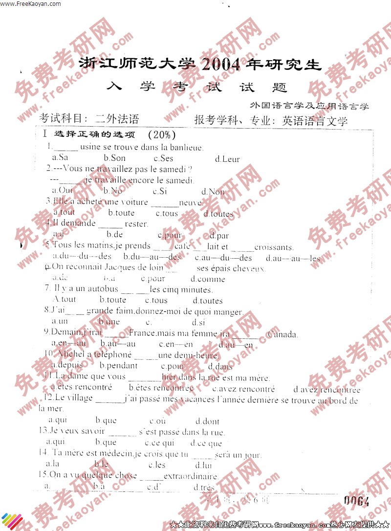 专业课考研经验 本站小编 FreeKaoyan 2018-01-22浙江大学2005年考研真题-日语语言与文学