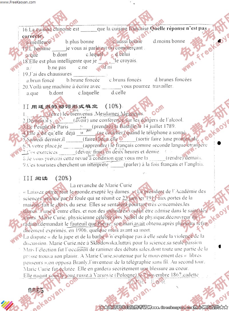 专业课考研经验 本站小编 FreeKaoyan 2018-01-22浙江大学2005年考研真题-日语语言与文学