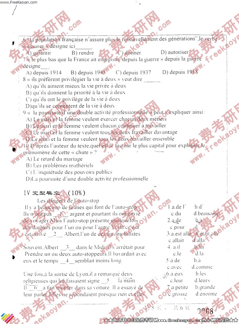 浙江师范大学2004年考研真题-二外法语(5)