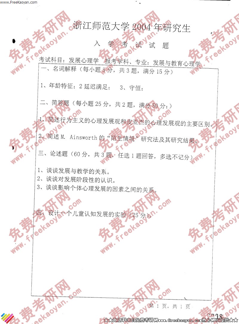 专业课考研经验 本站小编 FreeKaoyan 2018-01-22浙江师范大学2004年考研真题-地理教学论