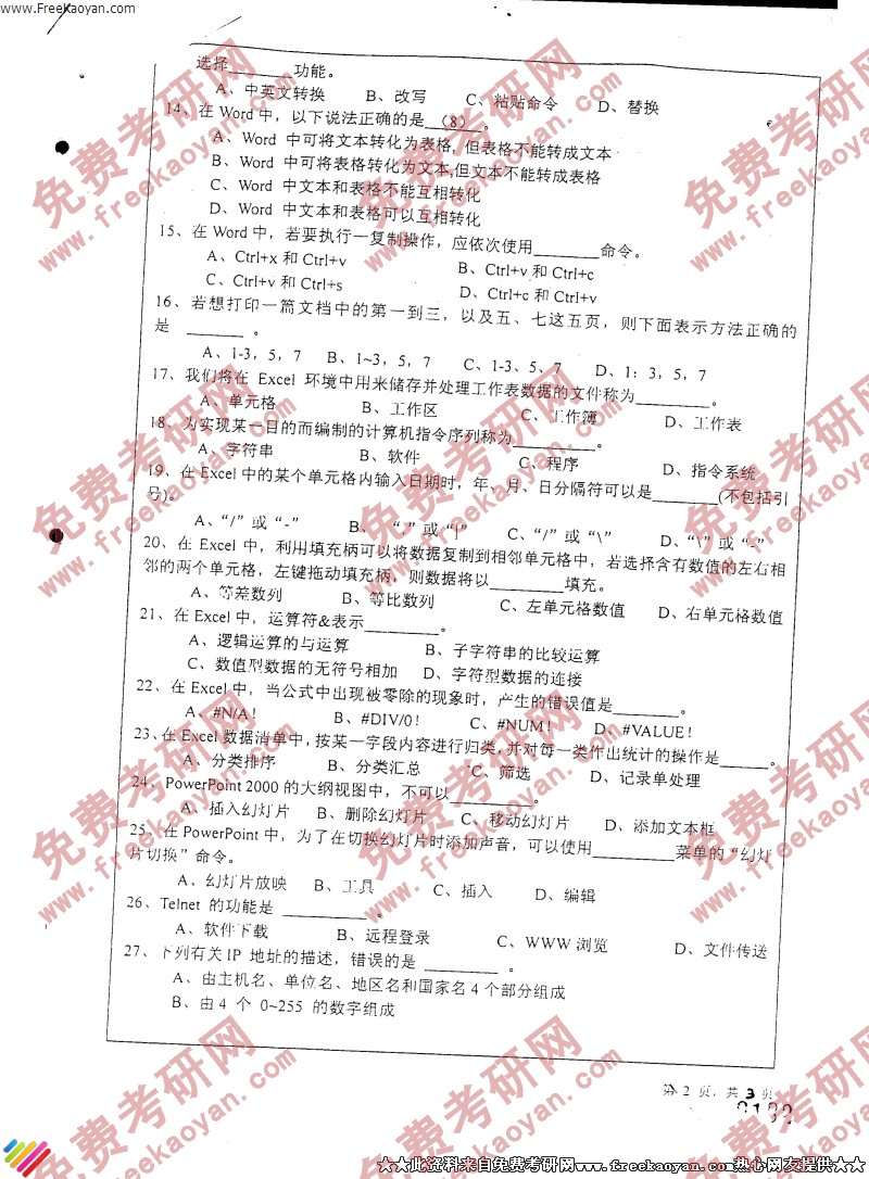 浙江师范大学2004年考研真题-计算机基础及应用(2)