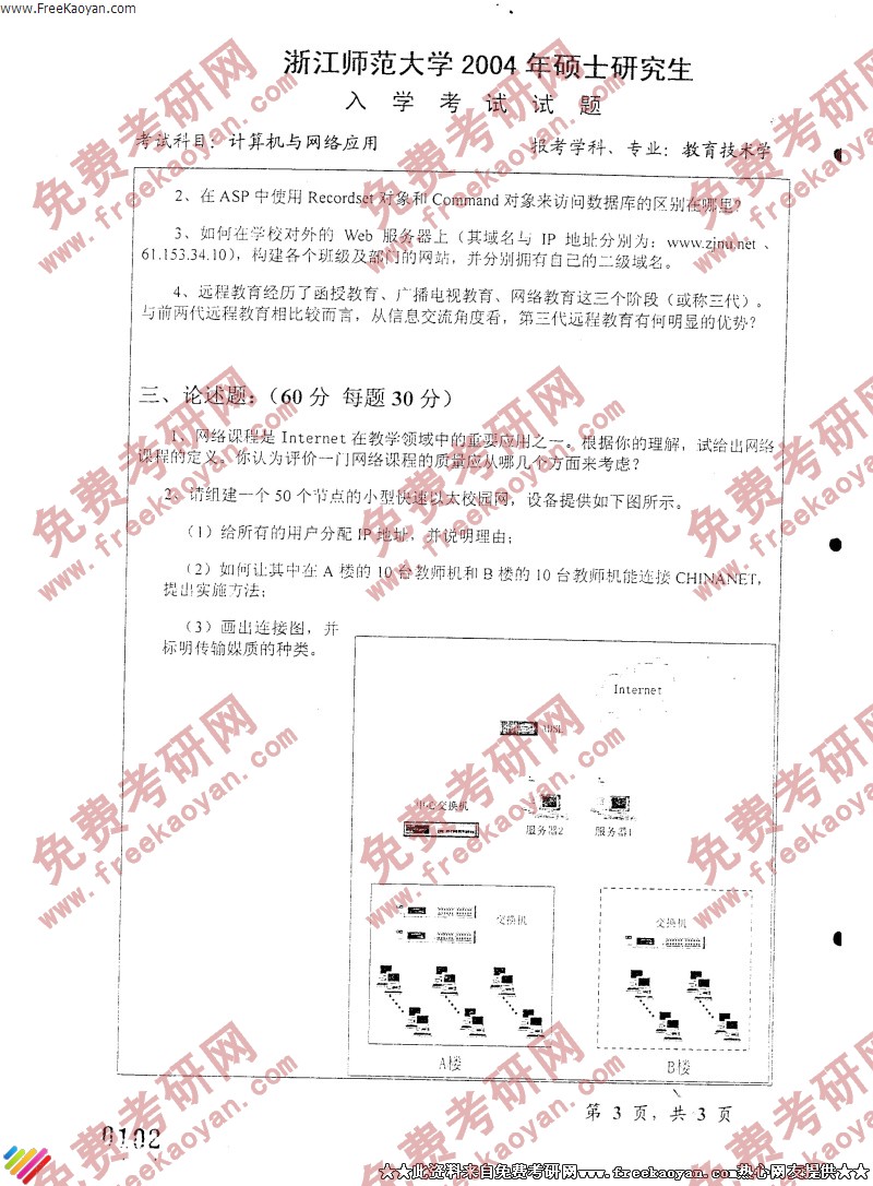 浙江师范大学2004年考研真题-计算机与网络应用(3)