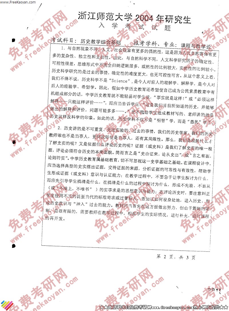 浙江师范大学2004年考研真题-历史教学综合基础(2)