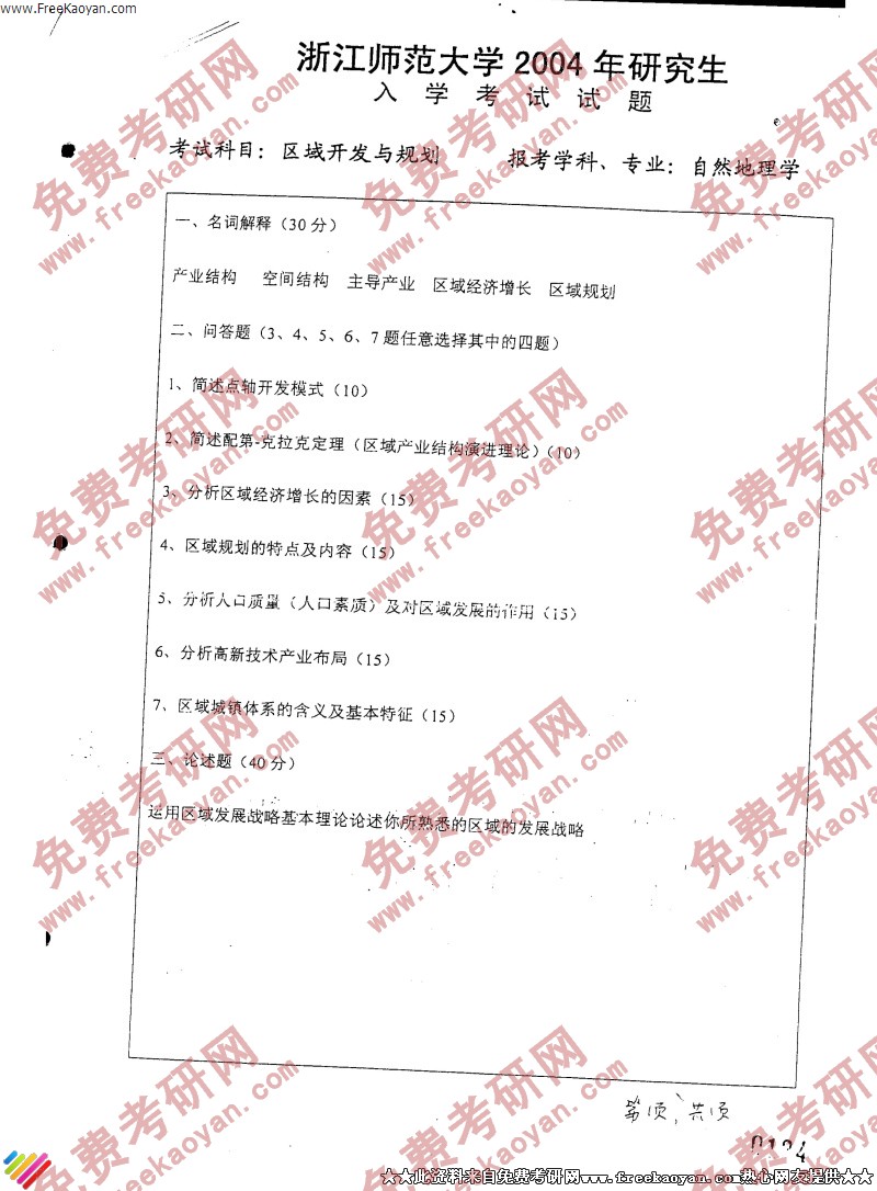 专业课考研经验 本站小编 FreeKaoyan 2018-01-22浙江师范大学2004年考研真题-科学基础