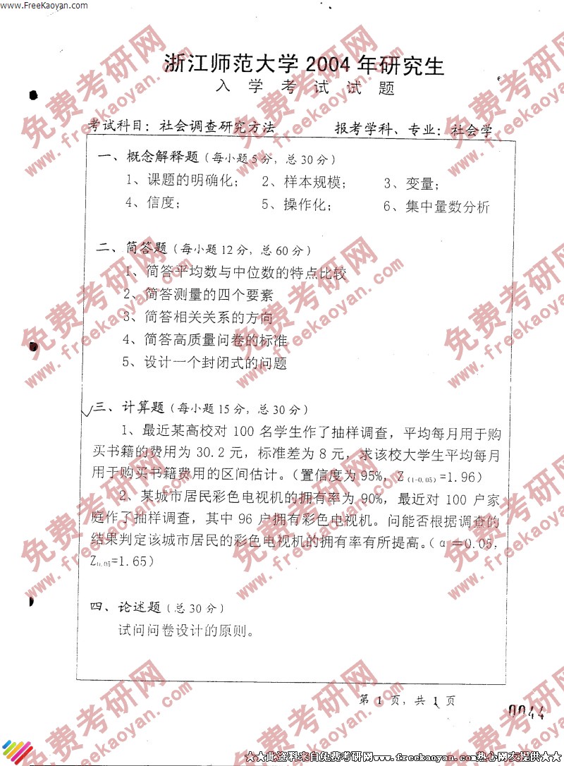 相关话题/浙江师范大学 考研真题 社会调查研究方法