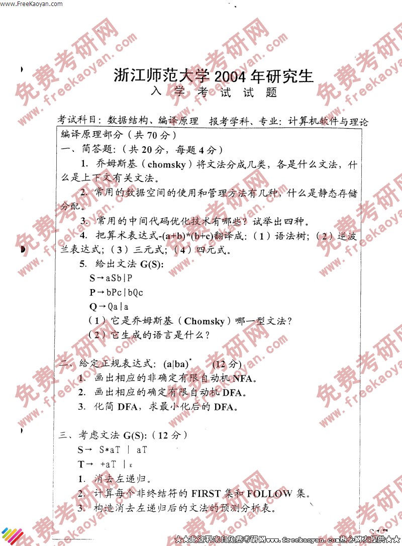 浙江师范大学2004年考研真题-数据结构编译原理(3)