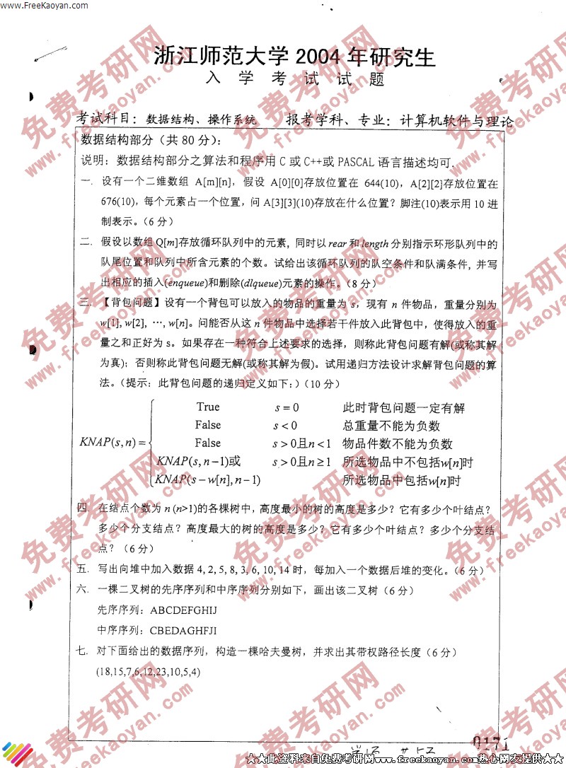 相关话题/考研真题 浙江师范大学 操作系统 数据结构