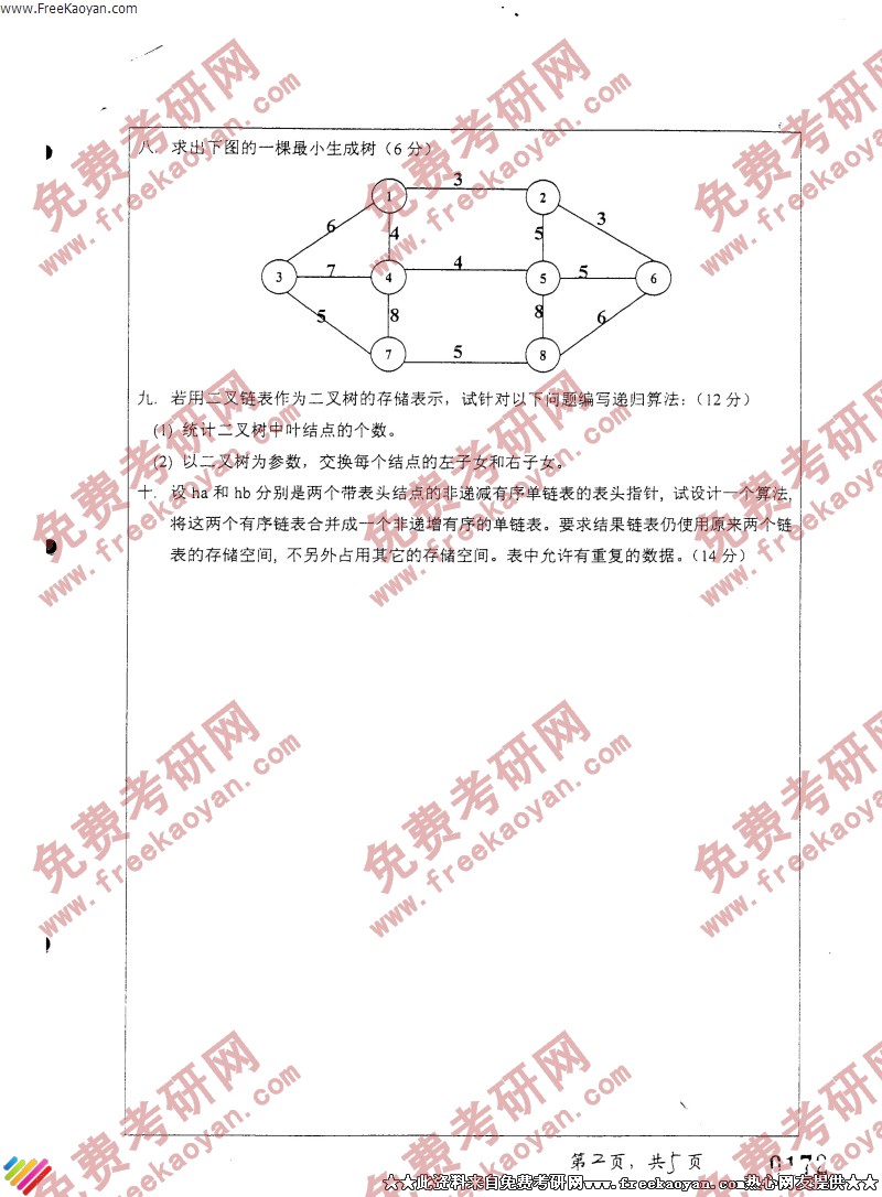 浙江师范大学2004年考研真题-数据结构操作系统(2)