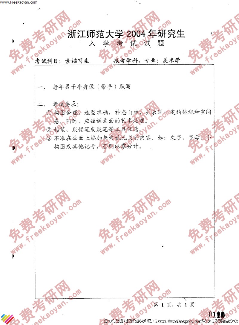 浙江师范大学2004年考研真题-素描写生