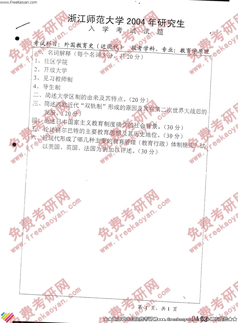 相关话题/考研真题 浙江师范大学 教育史 外国