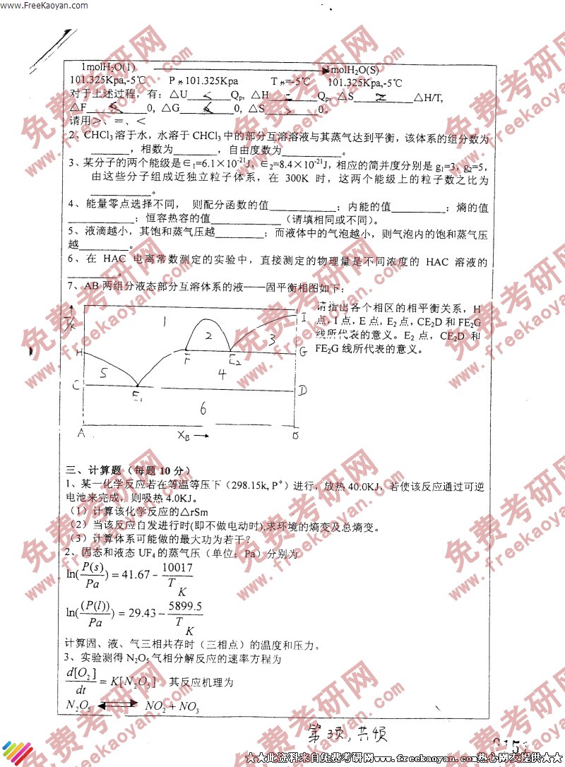相关话题/浙江师范大学 考研真题 物理化学