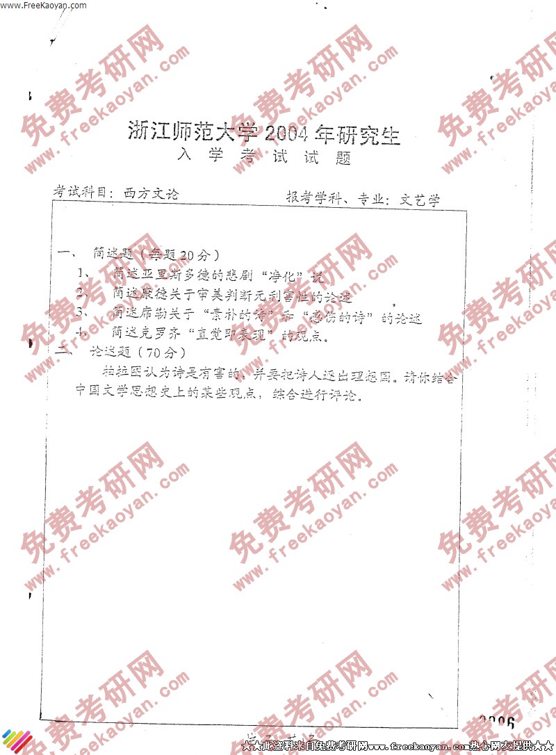 专业课考研经验 本站小编 FreeKaoyan 2018-01-22浙江师范大学2004年考研真题-素描写生