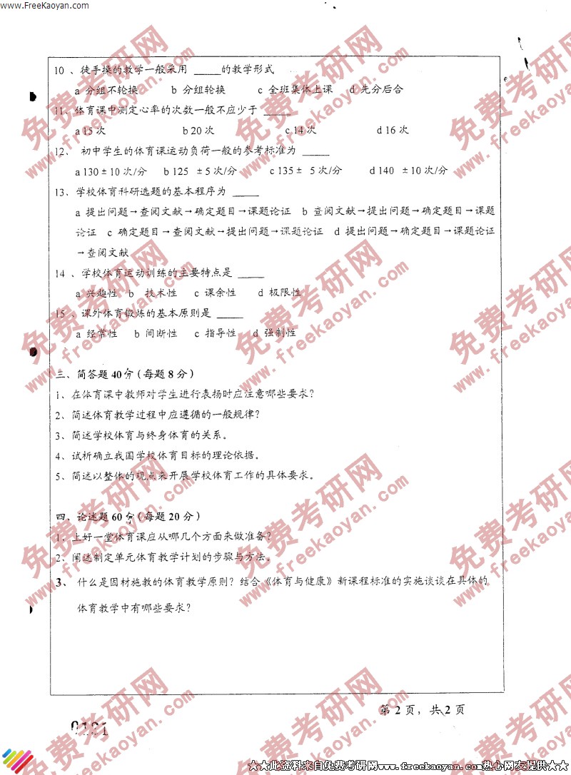 专业课考研经验 本站小编 FreeKaoyan 2018-01-22浙江师范大学2004年考研真题-体育概论