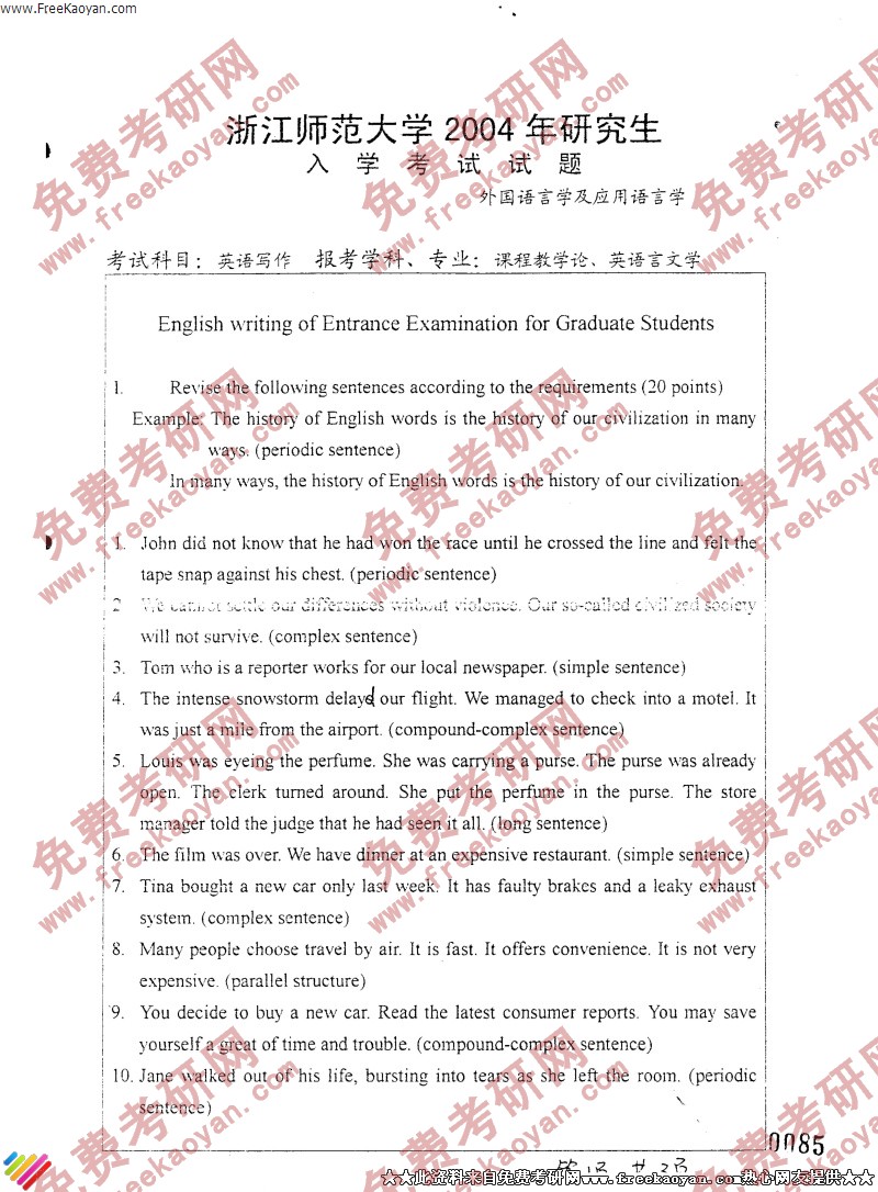 专业课考研经验 本站小编 FreeKaoyan 2018-01-22浙江师范大学2004年考研真题-素描写生
