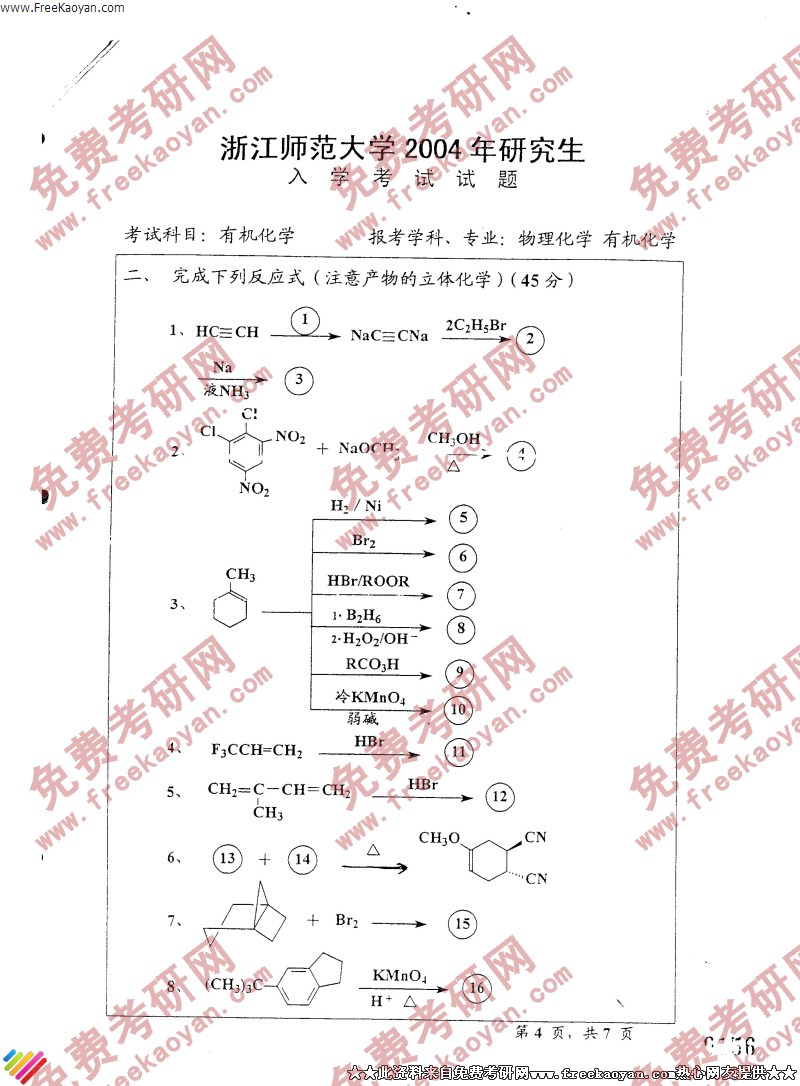 专业课考研经验 本站小编 FreeKaoyan 2018-01-22浙江师范大学2004年考研真题-物理化学