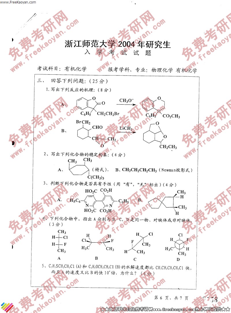 浙江师范大学2004年考研真题-有机化学(6)