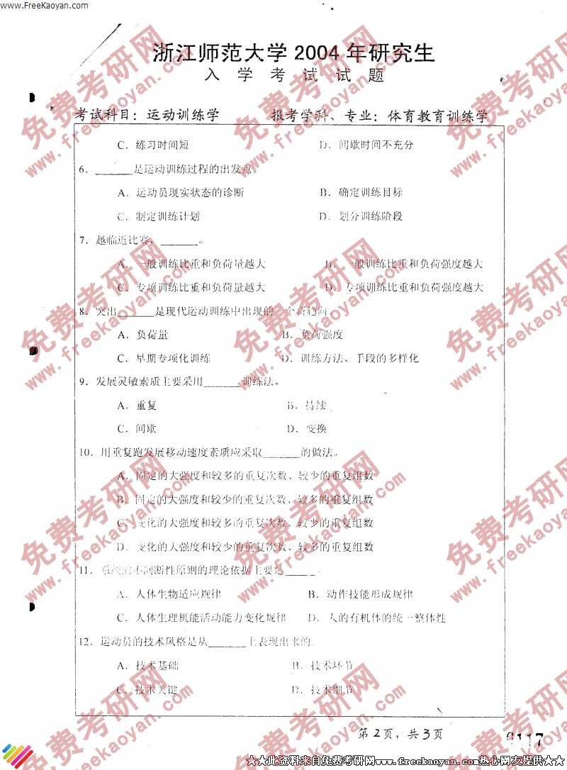专业课考研经验 本站小编 FreeKaoyan 2018-01-22浙江师范大学2004年考研真题-学校体育学