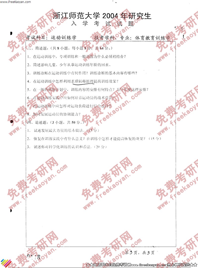 专业课考研经验 本站小编 FreeKaoyan 2018-01-22浙江师范大学2004年考研真题-学校体育学