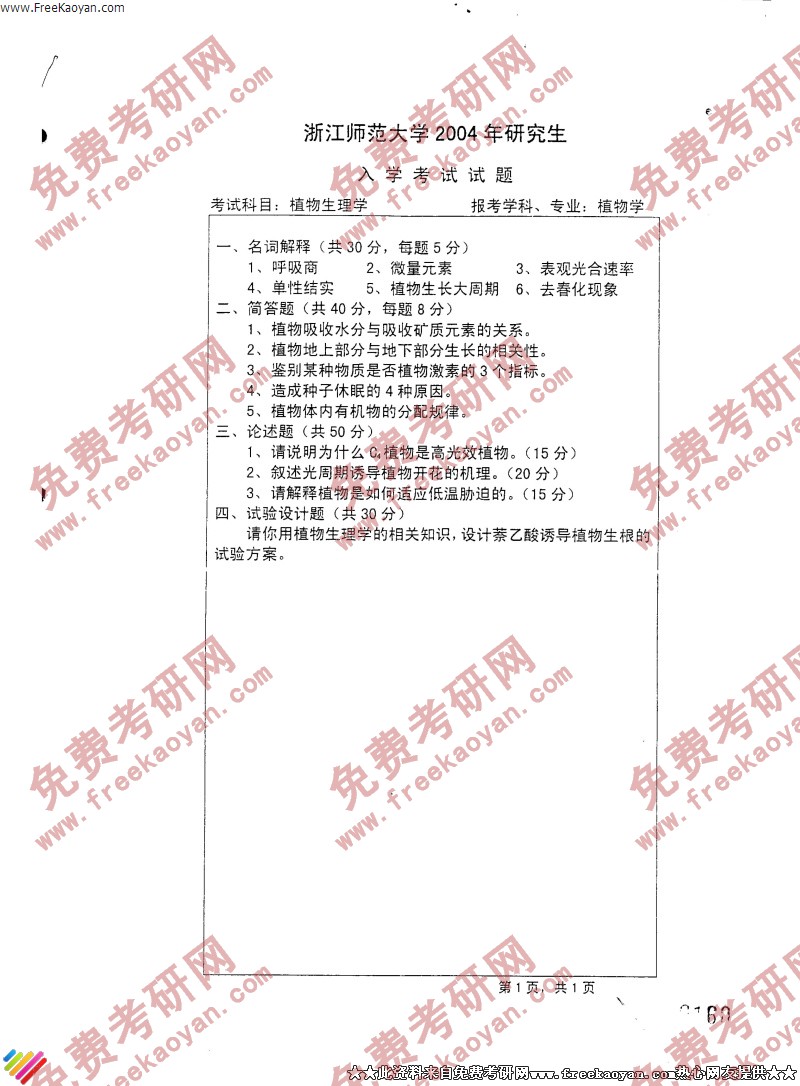 相关话题/考研真题 浙江师范大学 生理学 植物
