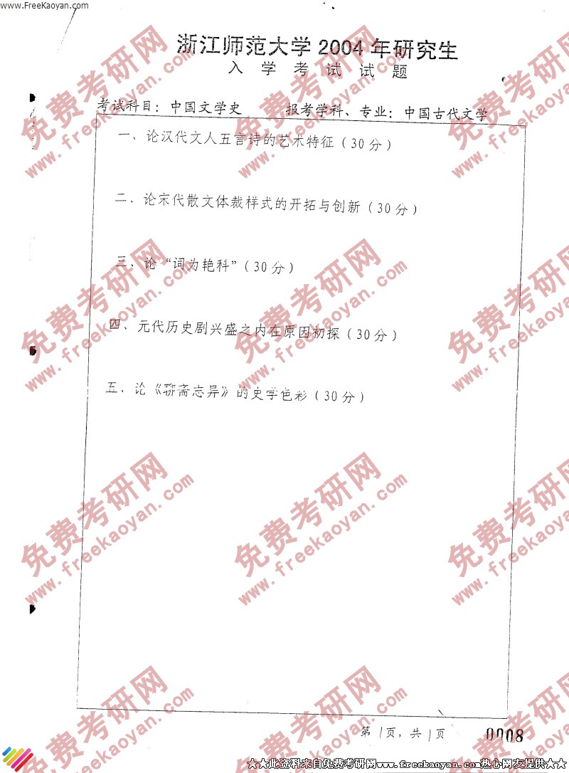 专业课考研经验 本站小编 FreeKaoyan 2018-01-22浙江师范大学2004年考研真题-中国文论