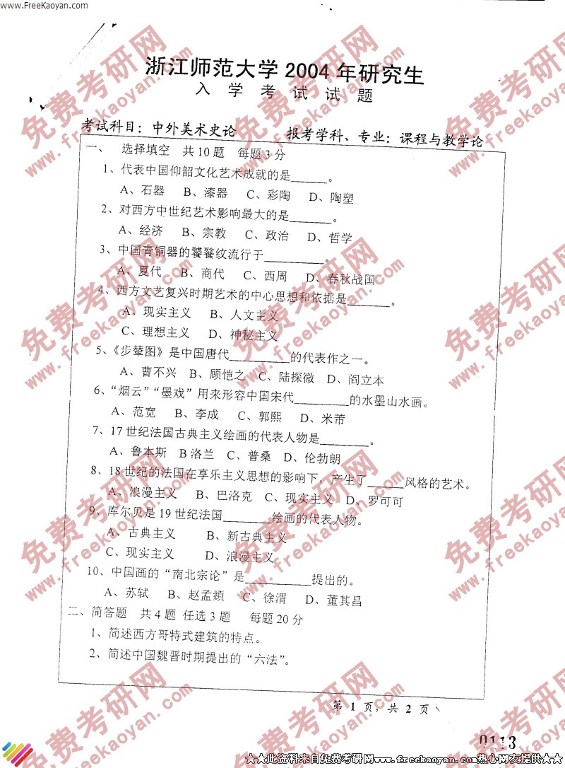 相关话题/考研真题 美术 浙江师范大学 史论 中外