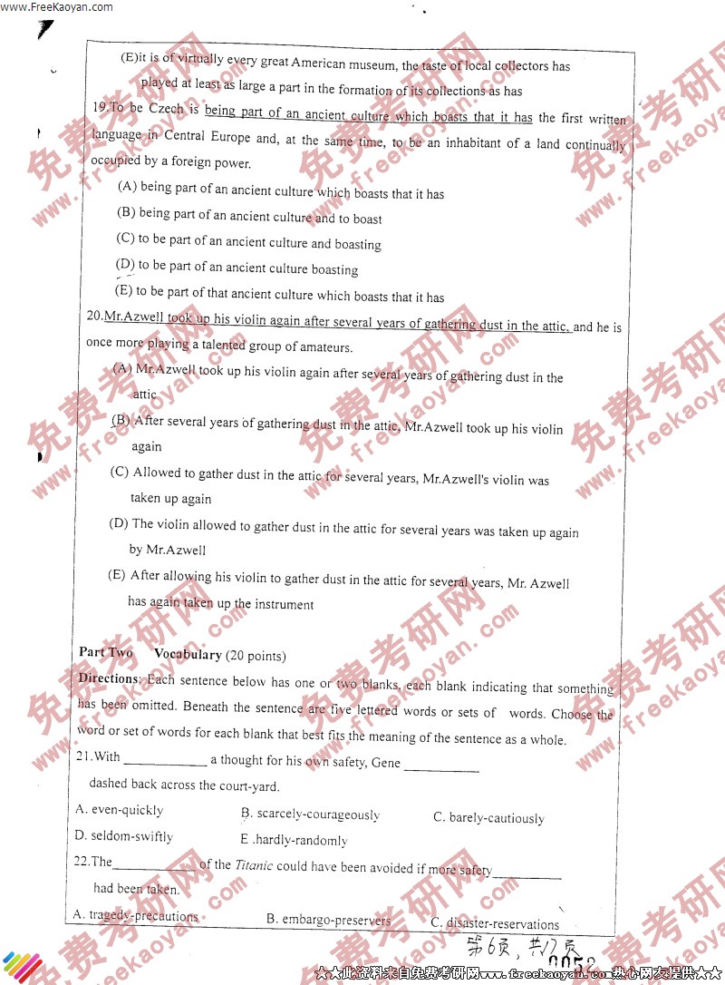 浙江师范大学2004年考研真题-综合英语(含英汉互译)浙江师范大学2004年考研真题-综合英语(含英汉互译)(6)