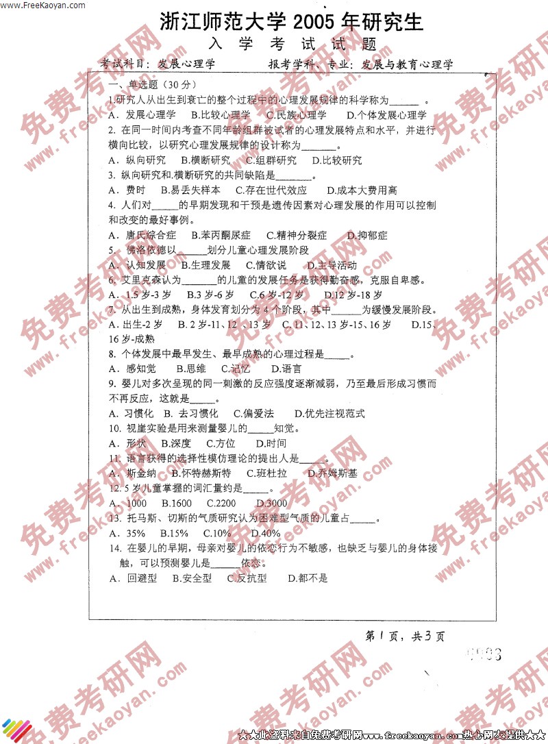 相关话题/考研真题 浙江师范大学 发展心理学