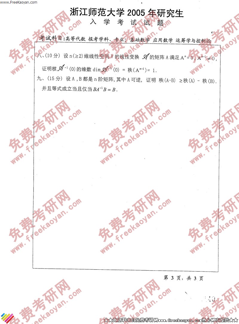 浙江师范大学2005年考研真题-高等代数(3)