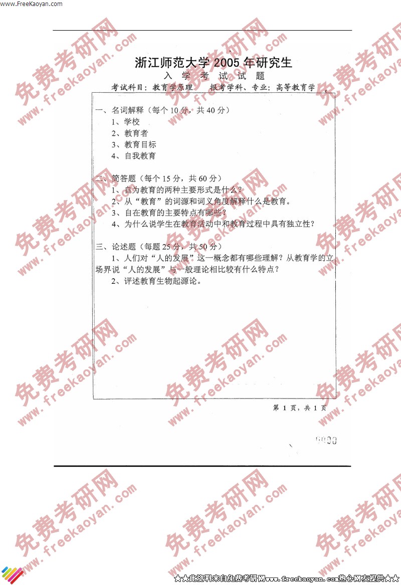 专业课考研经验 本站小编 FreeKaoyan 2018-01-22浙江师范大学2005年考研真题-教育管理学