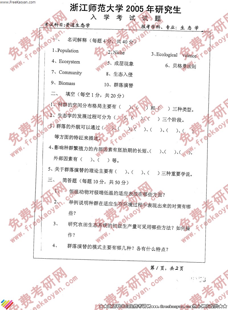 专业课考研经验 本站小编 FreeKaoyan 2018-01-22浙江师范大学2005年考研真题-环境地学