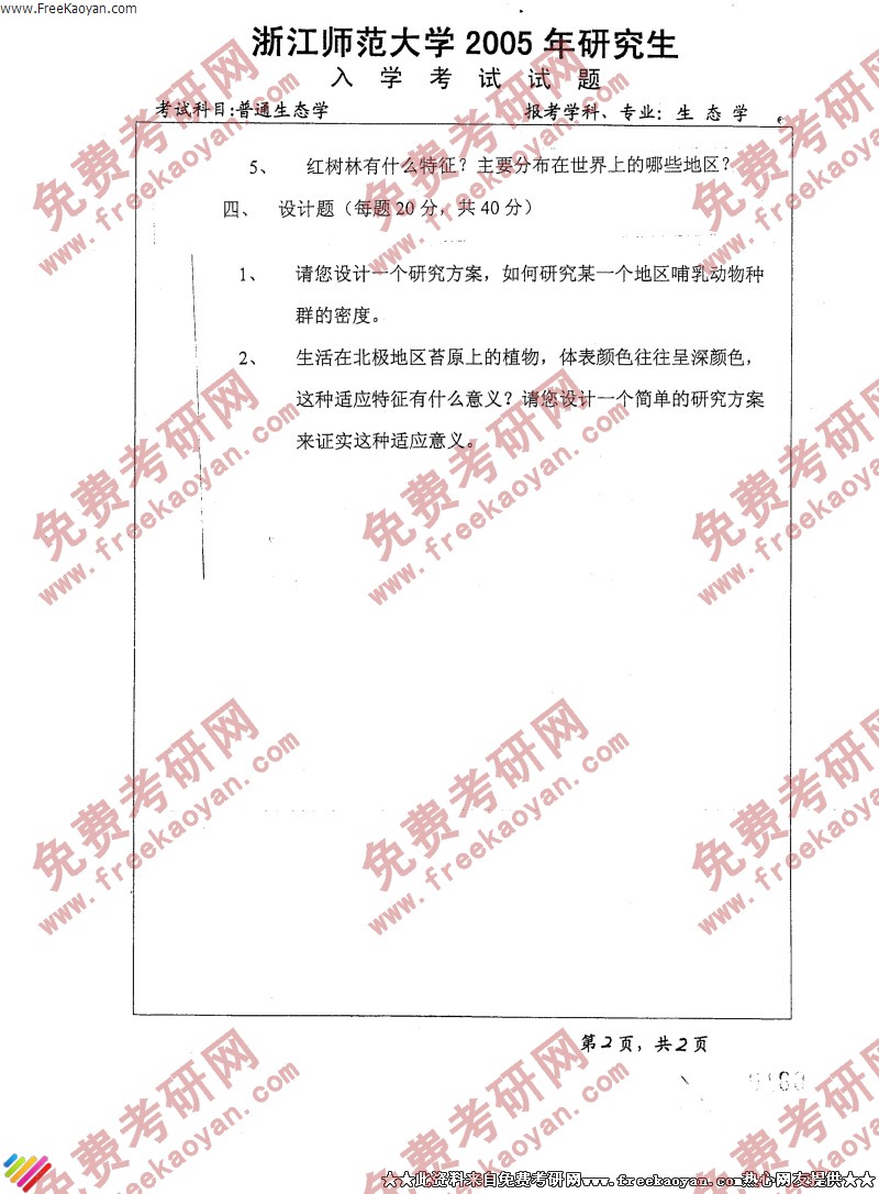 专业课考研经验 本站小编 FreeKaoyan 2018-01-22浙江师范大学2005年考研真题-环境地学
