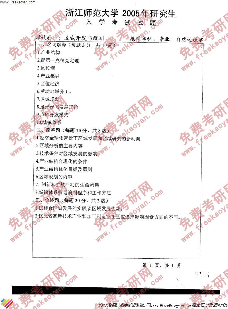 专业课考研经验 本站小编 FreeKaoyan 2018-01-22浙江师范大学2005年考研真题-环境地学
