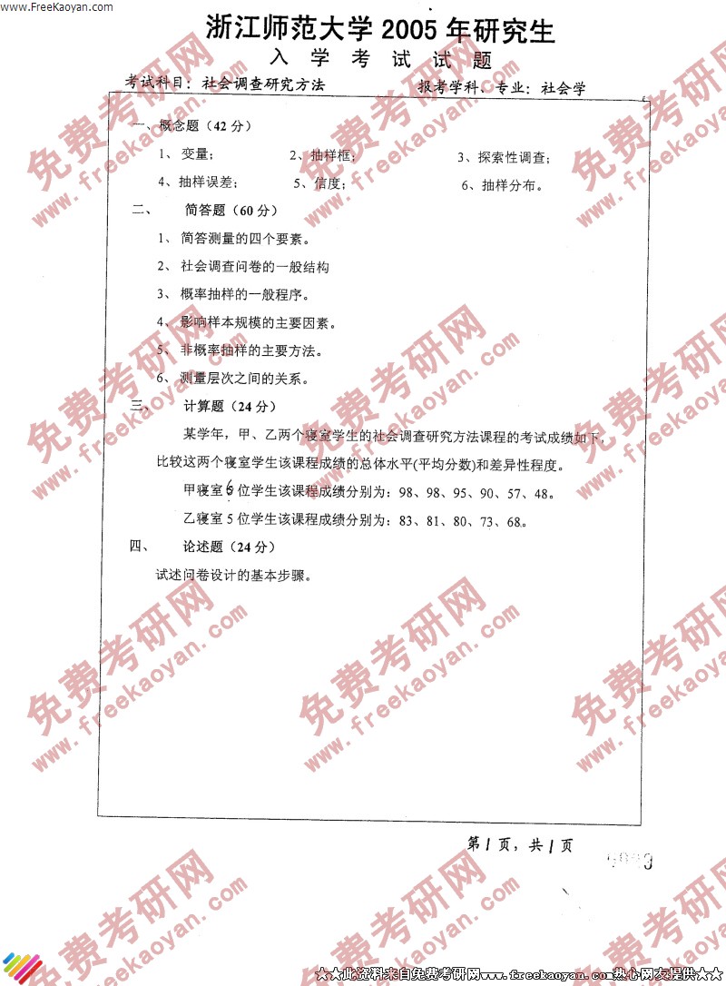 相关话题/浙江师范大学 考研真题 社会调查研究方法