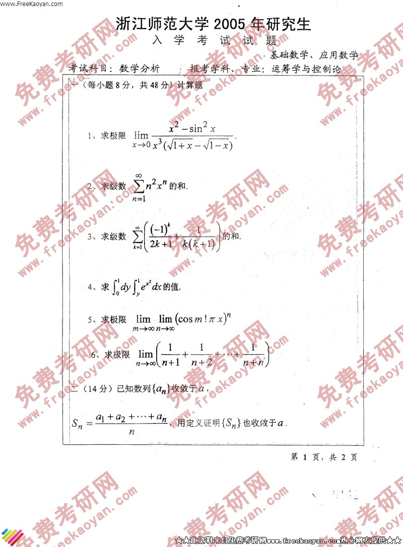 专业课考研经验 本站小编 FreeKaoyan 2018-01-22浙江师范大学2005年考研真题-世界通史