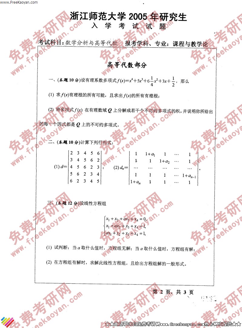 相关话题/考研真题 浙江师范大学 高等代数 数学分析